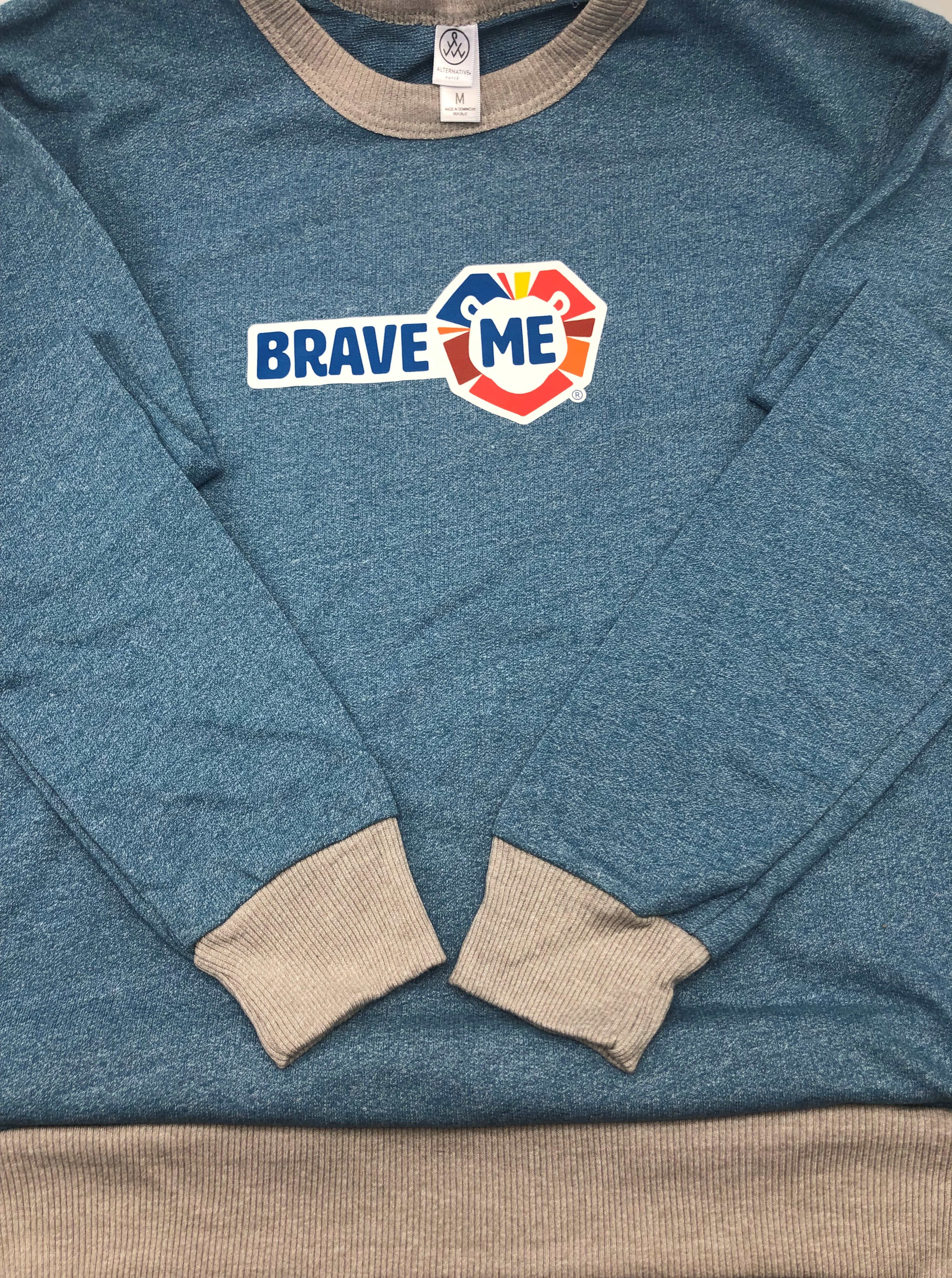 This sweatshirt is perfect to snuggle up while sporting some Brave Me gear. You can be comfy and still look colorful!